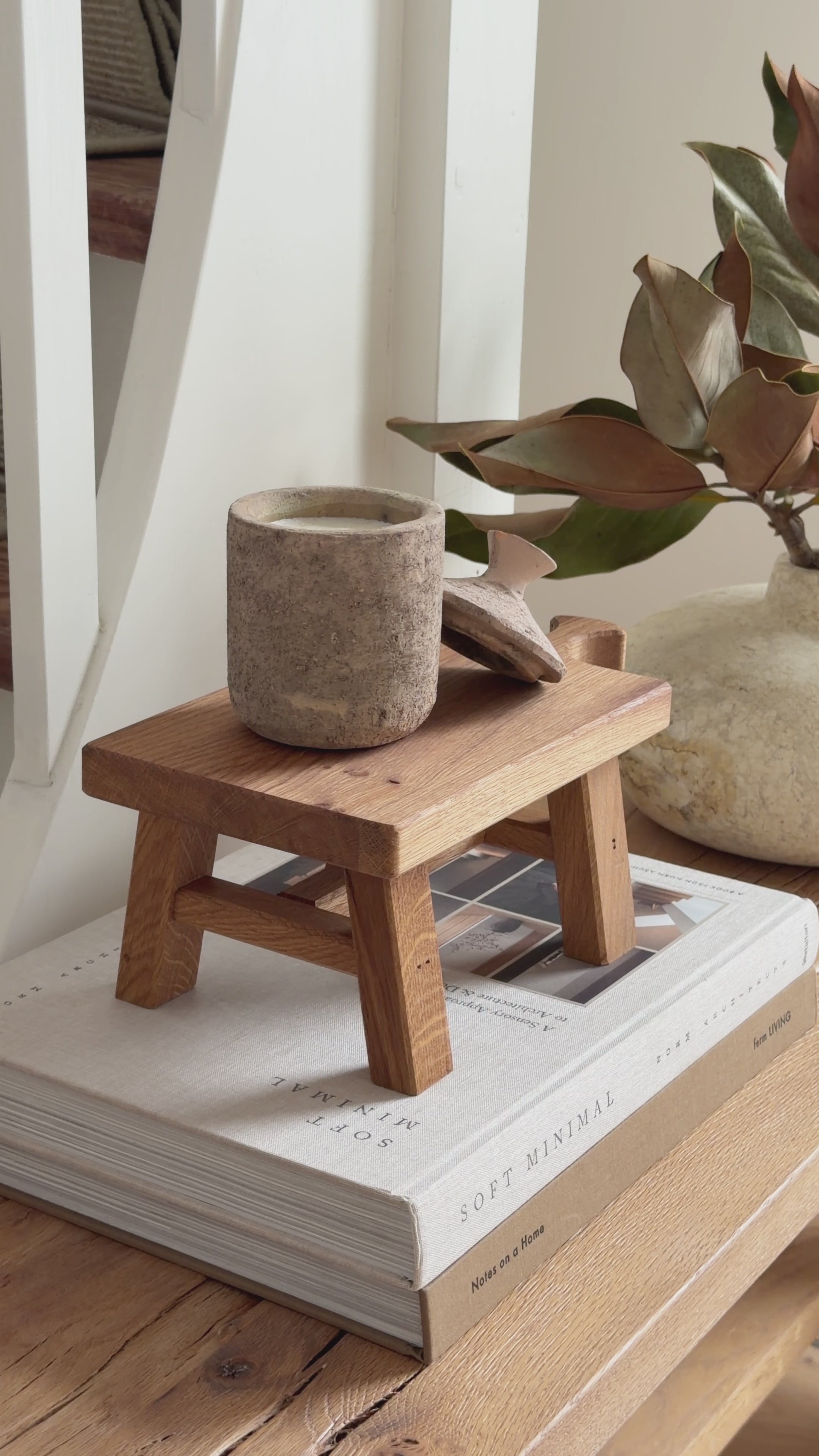 Die größere Ausführung des kleinen Holzhocker „Tova“ bietet eine etwas höhere Form mit größerer Grundfläche, ohne wuchtig zu wirken. Als Podest für kleine Vasen, Duftkerzen oder andere ausgewählte Dekorationen schafft der Eiche Hocker eine dezente Erhöhung und bringt einzelne Stücke ruhig zur Geltung. Durch seine schlichte Erscheinung lässt er sich vielseitig platzieren und fügt sich selbstverständlich in unterschiedliche Wohnbereiche ein.